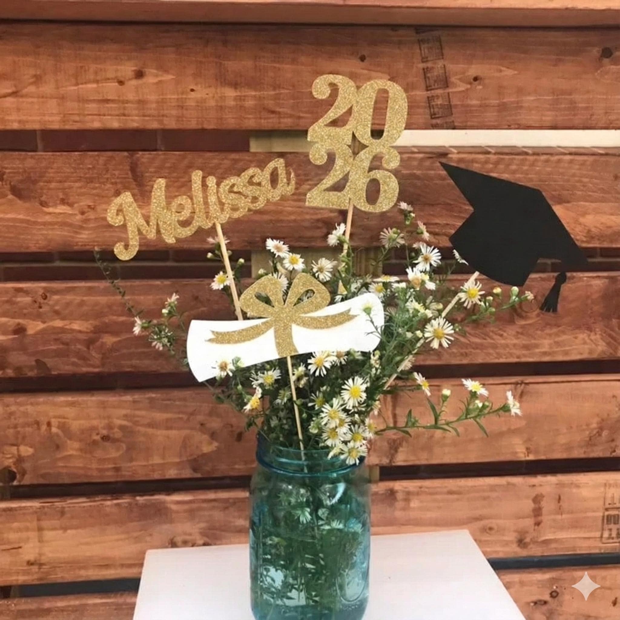 *Set of 4 graduation sticks includes ONE grad cap ,ONE diploma, ONE 2026 stick and ONE NAME