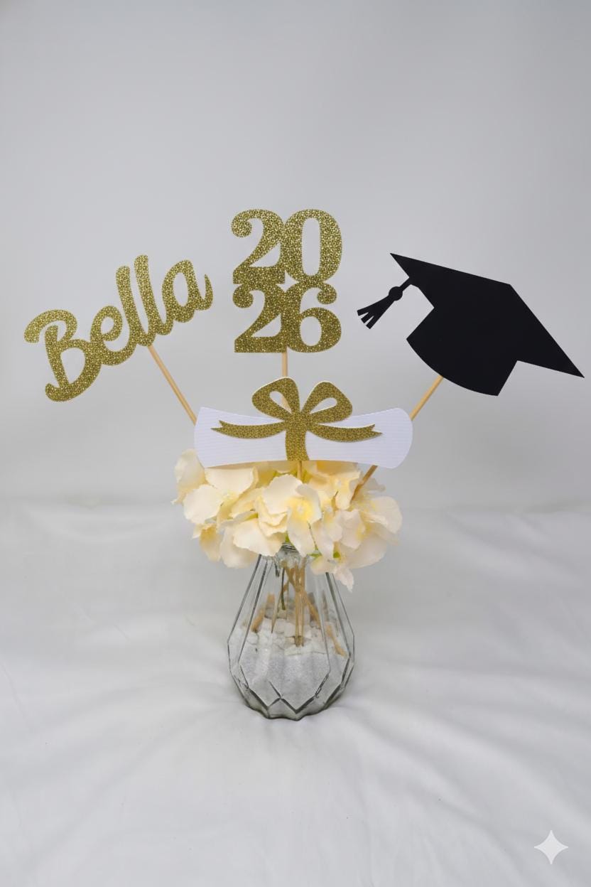 *Set of 4 graduation sticks includes ONE grad cap ,ONE diploma, ONE 2026 stick and ONE NAME