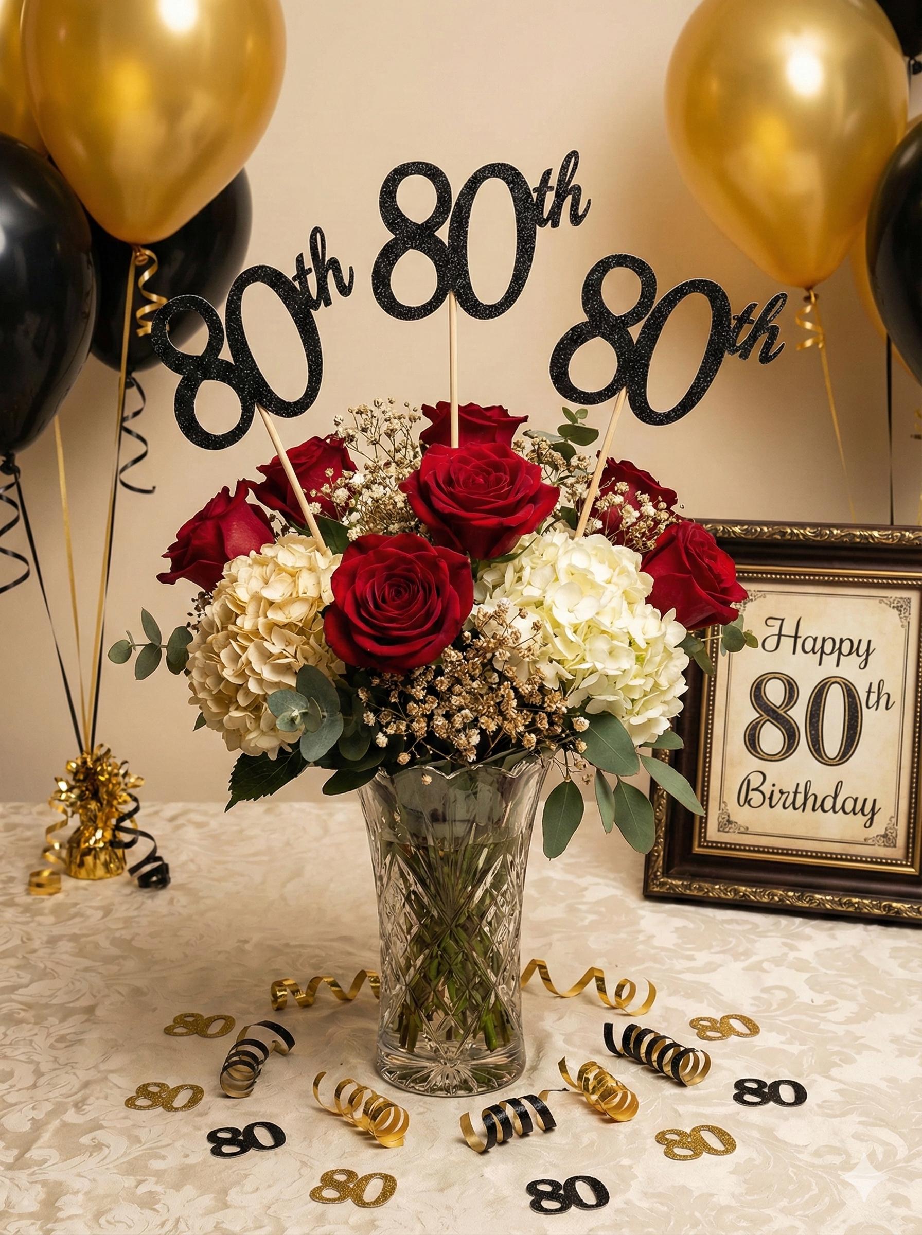 "80th Birthday Party Centerpiece STICK" (Vase or Flowers are NOT included)